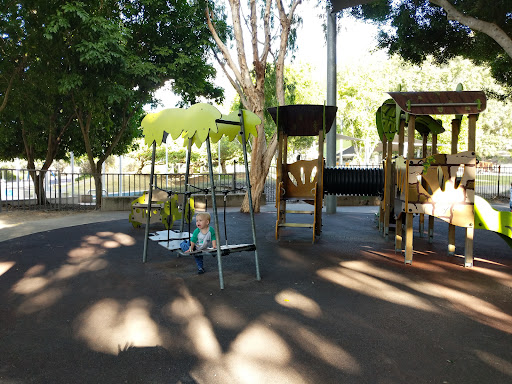 The new air pillow is a fantastic addition to this already well equipped park. The flying fox is still popular and playgrounds for both the younger kids and tweens in good repair. The water run was still in use for leaf races during our Brisbane winter and a wheelchair swing is available. The net hammock swing was out of action recently but rolled ip with caution tape which tells me that it has been noted and awaiting repair. Large grass areas are great for ball sports, tram sports or kite flying and the multiple tracks are popular with joggers, scooters, bikes and walkers. The community garden provides a point of interest and good ideas for possum proofing your home garden with the simple yet effective net domes created. I must investigate the compost options here too as my home bin has slowed down with the coolness of winter. A great way to spend many hours. Bring a picnic or your BBQ items, I have also seen a coffee van and Icecream van visit during popular...