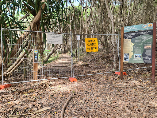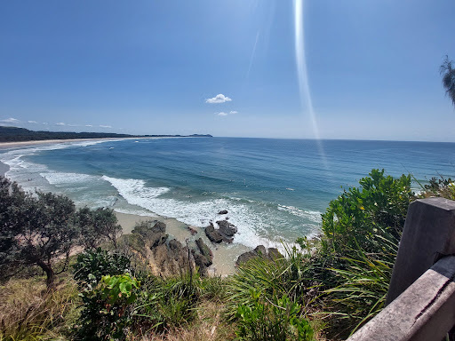 However, when it reopens it is well worth the walk for the lovely views of the coast and the rocky headland, you can watch the surfers, occasionally see whales, dolphins and turtles passing around the headland at the right times of year... There is also a good view north up the coast to Cape Byron headland...