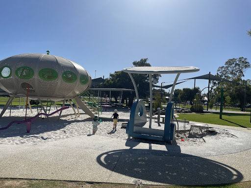 Read moreAbsolutely brilliant park, in fact I can’t think of a better one I’ve been to with my 2 & 4 yr old! Good amount of shade, fully fenced, lots of big and small play equipment for different ages (including little kids - the flying fox even has a seated option with a belt which little kids were using!). All themed for spaceships and aliens. So fun! Water play is well laid out and great too. Everything very clean including the toilets, which are inside the fencing. My kids scootered around too. Loved all the grass instead of sand under lots of the play equipment (coming from a mum who is sick of sand in my shoes!). Came this morning for the first time since it’s reopened and ended up staying 2 hours. Best kept secret, I was shocked how great it is! We will...