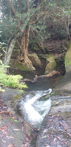 The Grand Canyon lookout is located Bundanoon in NSW. A fee is payable on entering the State Park with the dirt track taking you directly to the parking area about 10mtrs from the lookout. The viewing platform is located on a gigantic undulating sandstone rock, with the perimeter fenced for safety. The view of the terrian from this precipice is amazing with the sky, like icing on a cake topping the tall gumtrees trees. Below this are massive rock faced Clifts followed by more stunning bushland. There is yet another huge rockfaced clift and below this your gaze falls to the tall densely covered bushland covering the deep valley below.