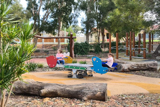 Nice for toddlers and little kids.(2yrs - about 9yrs) There is a water feature area with fountains and waterfalls that little kids can splash in and put their feet on. It does random patterns and can be restarted by a button on the wall. It's got sail sun shades and grass surrounding with large logs for parents to sit on. Nearby is another covered area with barbecues and a locked area with fridge & sink which you can hire the key for if you want to have a kids party. For larger kids there's swings, flying fox etc. Usually on nice days there's an ice cream van parked very close that does hot & iced coffees as well as Pringles and various soft serve ice creams and icey poles. Bit expensive but nice.