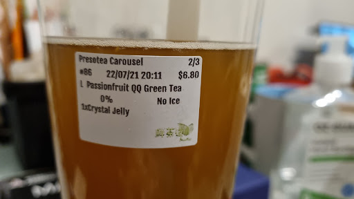 Read moreTHE WORST SERVICE with Presotea - I drink Presotea at least 5 days per week or everyday. i bought from many shops but this shop service was the worst. I bought in this shop a lot of times and the milk tea was always much sweeter than other shops with the same sugar level. it makes me confused. The bad experience makes me write this review was: I bought one milk tea with 25% sugar and it was too sweet like 100%. I asked them to add ice, they said: "we are too busy so we will cut the seal, add ice for you and we will not reseal for you" WHAT???? you are busy? no way, let come to city to see how Presotea staffs do, they are much more customers than you 3-4 times but they always put the service on the top. How many SECONDS do you need to seal? just put in machine and press the button, it wont take you over 3 Seconds. how do you think if I bring an unseal with full milk tea and ice and go for shopping or simply walk in Carousel mall? Staff attitude: they looked at me like I owed their money and scowl at me. i fell DISAPPOINTED AND...