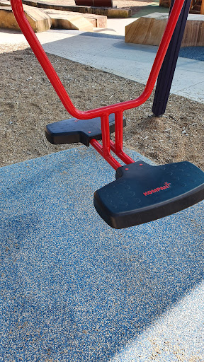 That said and despite my 5 star rating, there are a plethora of design flaws - some merely annoying, some a bit dangerous. There are many shade cloths and trees but they miss some critical parts like the top of metal slippery dips and the deck chairs. There are soft ground areas that mightn't help someone who fell from the top of a climbing wall. There are sandstone blocks with sharp edges and corners at the bottom of a hill that toddlers will definitely stumble down, even though the designers knew to treat the blocks just a few metres away (I think there shouldn't be stone blocks at all in that area). The water play area is a bit miserable and has no drain, even though this is a place that swelters in summer and all the kids I saw today loved to congregate and play with the tiny bit they had. There is no fence between the park and the parking lot or roads, even though the large park encourages kids to roam freely. There are ramps here but mostly there's stairs and, as the name suggests, it's on a hill so I'm not sure whether or not it's accessible or fun for mobility impaired people - kids or...