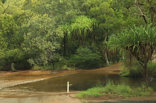 If you do this, keep in mind that the falls are located to the left of a washout. If you drive over the washout and the bitumen changes to dirt, you have gone too far. So we turned around and came back to the washout. There was a place to park both sides of the washout.