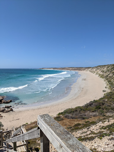 Beautiful beach, with amazing views. Although we did go on a horrible wet day, the views were still superb and we even got to see a pod of dolphins swim past. The road to get there is a bit rough and stairs are pretty steep. Even though it is extremely windy and there are strong rips, it is a great place to surf, especially on a sunny day. Lots of rock pools nearby so great for rockpoolers. If you are in the area it is definitely a fantastic...