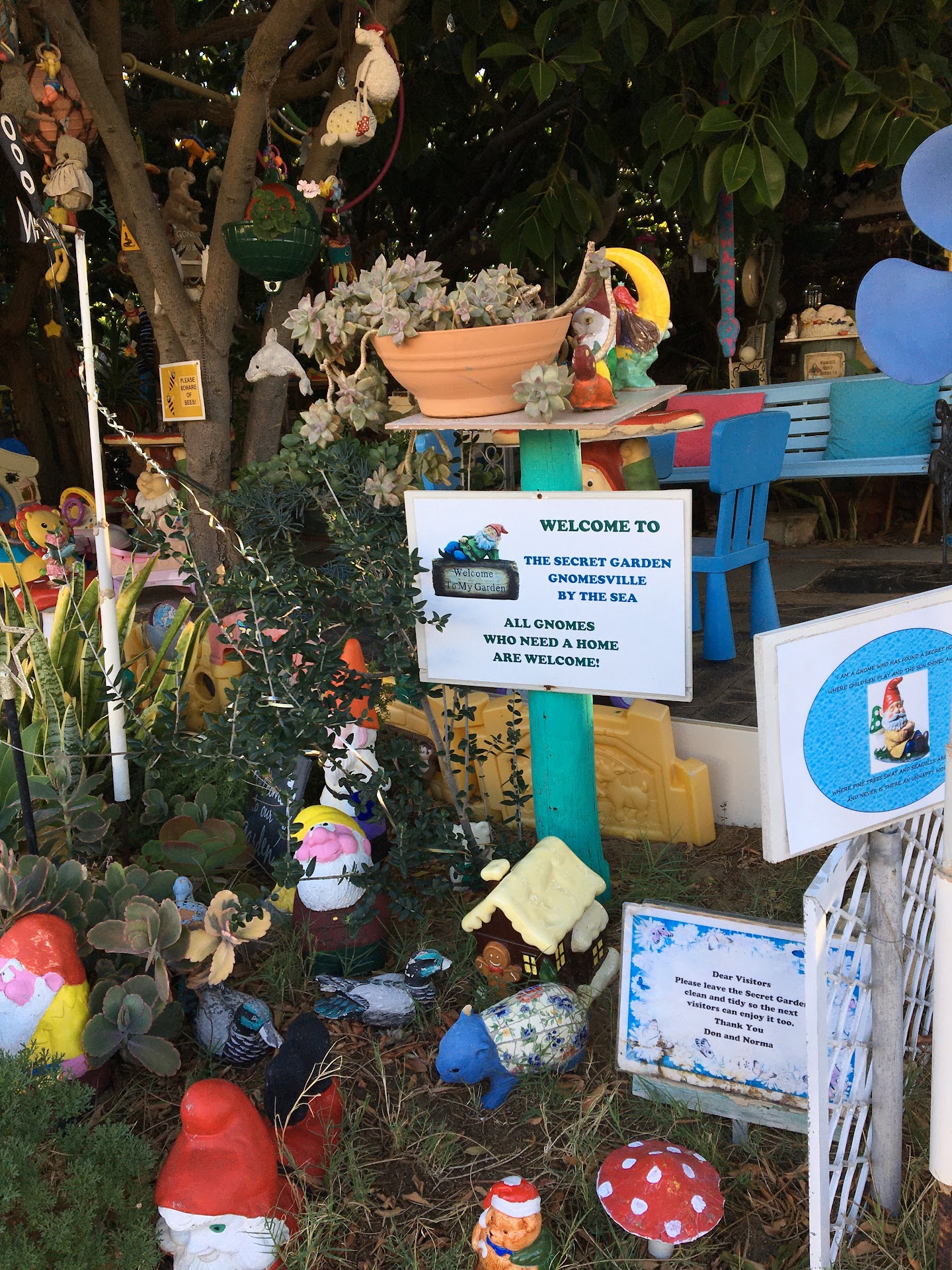 Read moreQuirky, not creepy or scary, place that's an alternative 'playground' haven for kids. Plenty of chairs for adults to sit in while the kids explore (you can see from one end to the other) in shade. Sand pit, low branching trees to climb, teepee, lots of Knick knacks and soft toys placed around the trees and ground to look at. There's a charity box for donations to a children's cancer charity if you want to donate in return for visiting. 'Ponds' are not much bigger than bird baths in size. I don't think I've seen anything like it before! Brilliant work by the creators,...