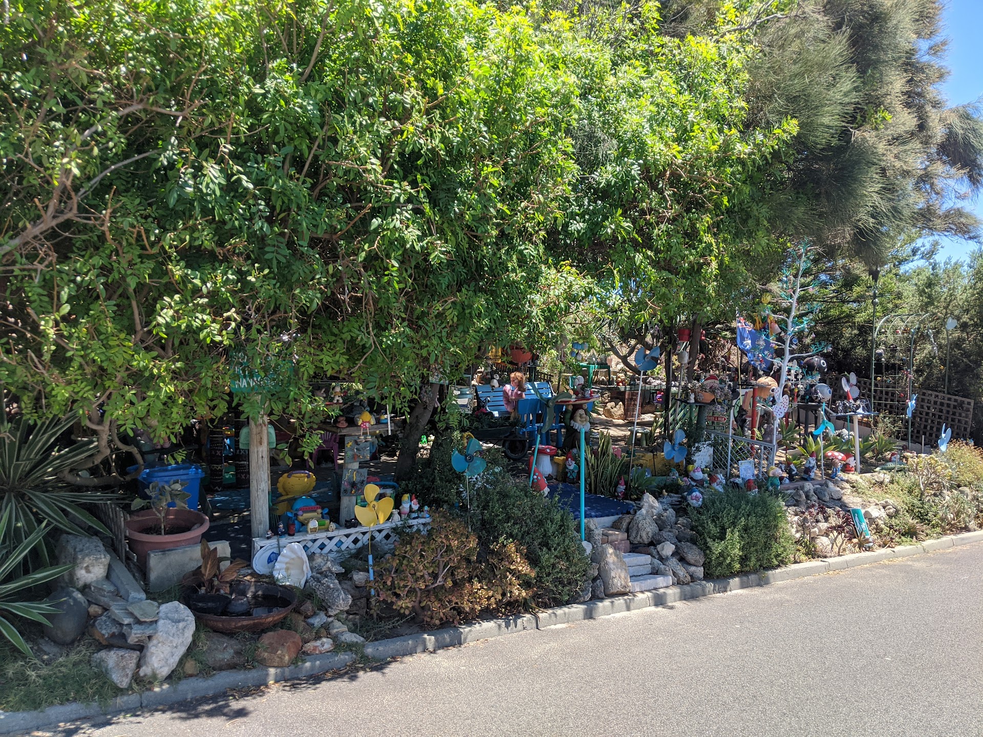 This is a charming place to visit, but it has a solemn backstory. Many of the gnomes in the garden actually used to be human men with their own wives and children. Some of the men used to be very successful, with careers in business or finance or engineering on St George's Terrace. However, the men each fell on hard times and lost all their money, no longer able to feed their families, and some even forced to leave their homes. A strange spirit visited the men and said, "I will make you a deal: I will make sure your wives and children have enough money to be happy and healthy for the rest of their lives: food, clothing, education; they will want for nothing. However, the cost is that you must become a gnome and come and live in the hidden gnome garden forever." The honourable men, full of warm-hearted concern for their deprived families, all agreed to the spirit's bargain. How could they say no? One by one, with tears in their eyes, they said goodbye to their wives and sons and daughters before the spirit shrunk them down to gnome height and put them in the garden where they are now. You will see big ones and little ones, some colourful and some a bit dull, all a bit different just like the men they used to be. It's not always nice being a gnome: sometimes birds peck at you, sometimes dogs wee on you and sometimes rascals pick up and kick and break you. Nonetheless, for the gnomes, it is a worthy sacrifice, knowing that their wives and children will be taken care of for as long as they live. As for the other creatures in the garden, such as the fairies, they are...