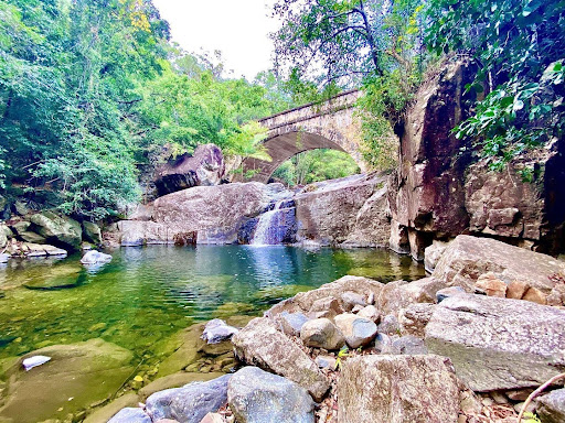 This beautiful spot is a well hidden gem 40 minutes away from Townsville. Very winding road to get there but you are rewarded with beautiful cool water, a delightful series of waterfalls and a classic old Bridge which makes you thankful for the men and women who sacrificed to build the road and bridge for us to enjoy now many many years later. There is a generous car park, a beautifully maintained composting eco friendly toilet which was spotless when I went in and I commend the council for keeping in such pristine condition. I recommend that patrons appreciate that fact, keep the facility clean and do the next bloke a favour! Definitely not a place for disabled or people with walking difficulty and particularly dangerous even for able bodied people because of the slipperiness of the rocks and poor access to the waters' edge. Be on your guard and be very careful. This would be the perfect place on a hot summer's day but I would imagine it would be standing room only! Most certainly worth the drive from Townsville a most pleasant drive and reward...