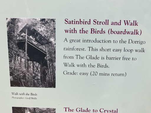 This spot is one of the features of Dorrigo National Park. It's an elevated walkway up amid the trees of the rainforest. It's an easy walk from the Glade Picnic Area (not very far past the Dorrigo Rainforest Centre). The experience of walking up amid those beautiful trees and seeing the birds is very special. Since the walk is short, it's easy to combine it with with other hikes in this...