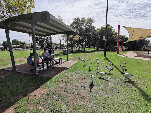 Read moreClean park for families close to the centre of town. There is a water park section & a fun playground as well as a flying fox for the kids who can talk their parents into pushing them back & forth. The park has picnic tables, toilets, BBQs and water. There are shaded areas & plenty of space to ride...