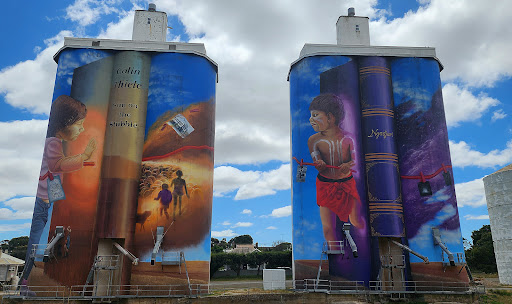 Really lovely silo art, a must see when visiting Eudunda. It is well signposted and you can get a good look at it from up on the look-out as well as close-up. There is a carpark and you need to walk a bit to get to the silos, past the old railway station. As well as the silo art, there are beautiful mosaics as part of the Eudunda Mosiac Trail. The silos are a beautiful tribute to Colin Thiele, Eudunda and the...
