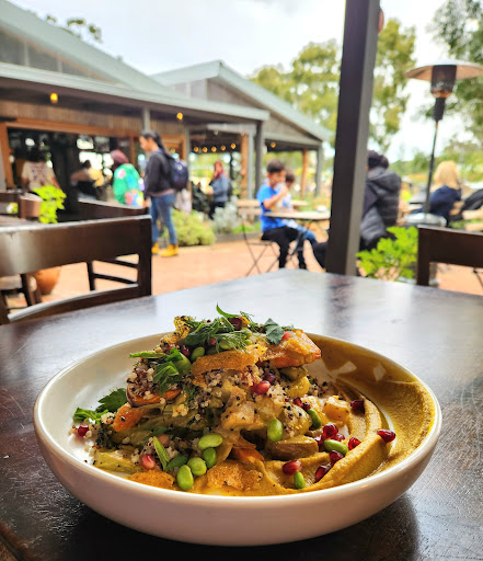 There is a cafe where you can sit indoors, outside on the veranda or picnic tables. You can order at your table or via the QR code
