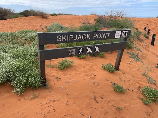 Viewpoint and lookout spot on the northeast coast within the park where you can see the beautiful sea and landscape of rich orange coloured cliffs hugging up against the turquoise waters of Shark Bay is quite spectacular here.