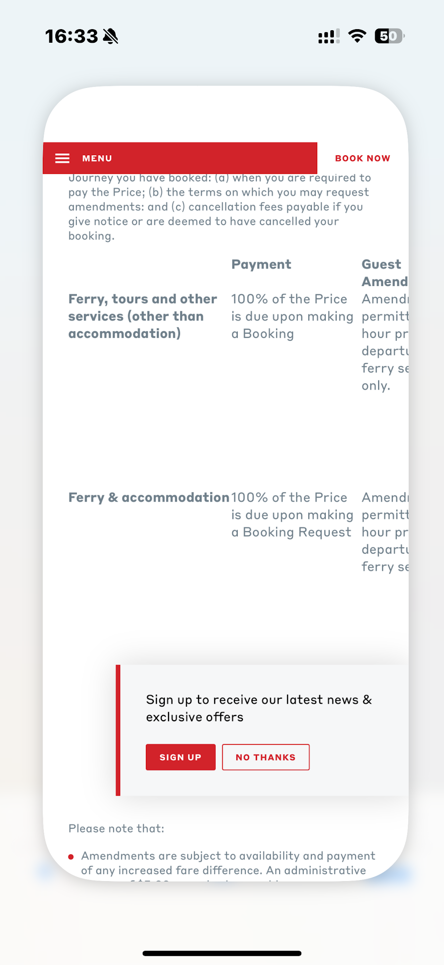 Edit x2: On the 4:00 Ferry my grandmother who relies on a scooter was told that she had to walk up the stairs to disembark. Obviously for someone who has disabilities this proved a challenge. The crew were blasé and unhelpful. When booking the tickets a note was made about her disability. We would have appreciated some communication if this was going to be an issue. It appears communication and the Standard Operating Procedures are very poor or are just plainly not...