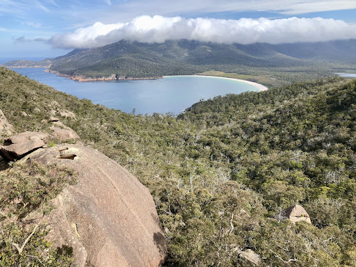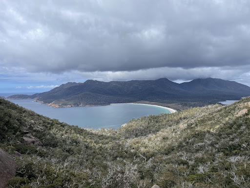 This is not the easiest walk – it’s a 45 minute slog up a steep hill, with little shade. But the track is good, and safe, and we saw many young kids make this along with their grandparents, while more than few couples had small children on their shoulders. There are no toilets, or water, once you start the walk, so, make sure you’re prepared for up to 2 hours in the sun, though most should be able to complete the mostly one way round circuit in about 90 minutes. Keep a close eye on the weather. You do not want to be doing this walk in a thunderstorm, or on a very hot day. But, if you want classic pictures of the sweeping white sand beach and green/blue sea, you need a sunny, clear day. Weather changes fast here, and can be very different on the ocean side, so, if it looks like it’s sunny and clear, rearrange your plans and get going if you want the classic pictures. But beware – the tourist shots you see are not taken from the lookout but from Mt Amos, which is a much harder walk, without a defined track in parts, and beyond the abilities of many. The view from the lookout is good, but not as good as Mt Amos. Finally, don’t make the mistake we did and effectively do this twice. The lookout is just a 5 minute diversion from the track to Wineglass Bay and the Hazards. If you’re already doing this walk, then there’s no need to make a separate hike to the lookout. The lookout track branches off the main track, after you’ve already done the hard slog up! However, if you then fancy a quick walk down to the bay itself beware, this is a steep 1,000 step hike. There’s plenty of parking at the base, and multiple spillover areas nearby if this fills up. And there are toilets and fresh drinking water at the start...