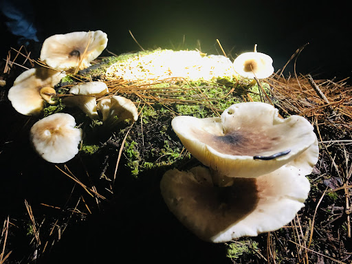 Best to arrive before dark in order to survey the area and for easy parking. Paths are marked quite clearly but do be aware of the uneven ground and tree stump and branch tripping hazards! Best to have a look up ahead when walking as signs marking the paths are a bit far apart. GPS and cell service available in the forest (for me at least). Would recommend waterproof shoes. Once dark, mushrooms and easy to find as the glow with a soft white light in the pitch blackness. If you have a camera (dslr or phone) with adjustable shutter speed, you can take some...
