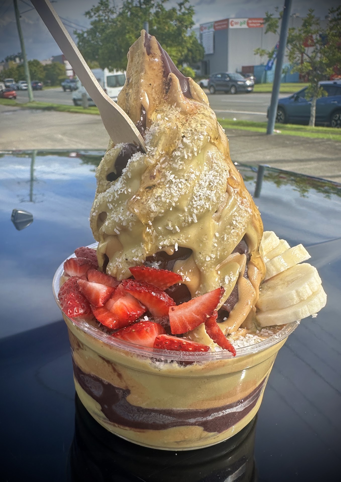 Ok so I randomly drove past one day and I saw the colour purple and hoped it was an aƧai truck so I did a quick U-turn and went back and yep it was. I was stoked as I’m a huge aƧai lover. The Gold Coast is full of aƧai places so to me I was thinking it was going to be just a normal experience but was I wrong. I ordered the pistachio aƧai bowl and when she gave it to me I was gob smacked. It was absolutely massive and looked so delicious. The presentation was far better than any aƧai place I have been to also. To add she was so friendly and great to talk too. I sat down and demolished this in a matter of seconds hahahaha. I couldn’t believe how good it tasted. I have since been back multiple times and it makes me days better just going there. If you’re a huge aƧai fan like me you gotta go check this place out. I’m writing here just after training and eating her gym junkie aƧai bowl and it so delicious. Go check it out, support a small business and have a great day!