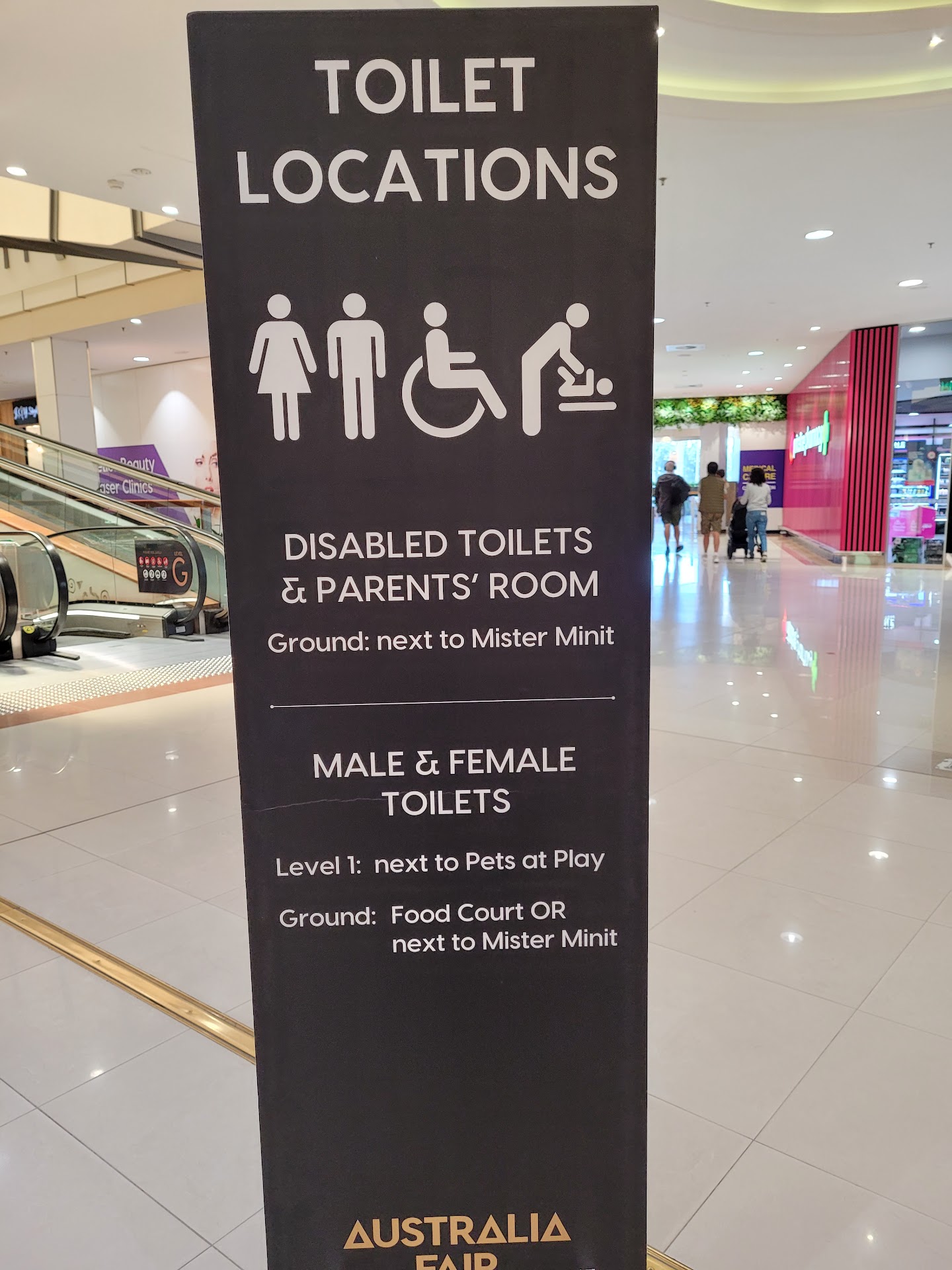 In the carpark you have no idea where shops are, (a sign will say SHOPS - but that's not useful with all the levels), unless you manage to find a park near a big store that's signed. (Like say Woolies.)
