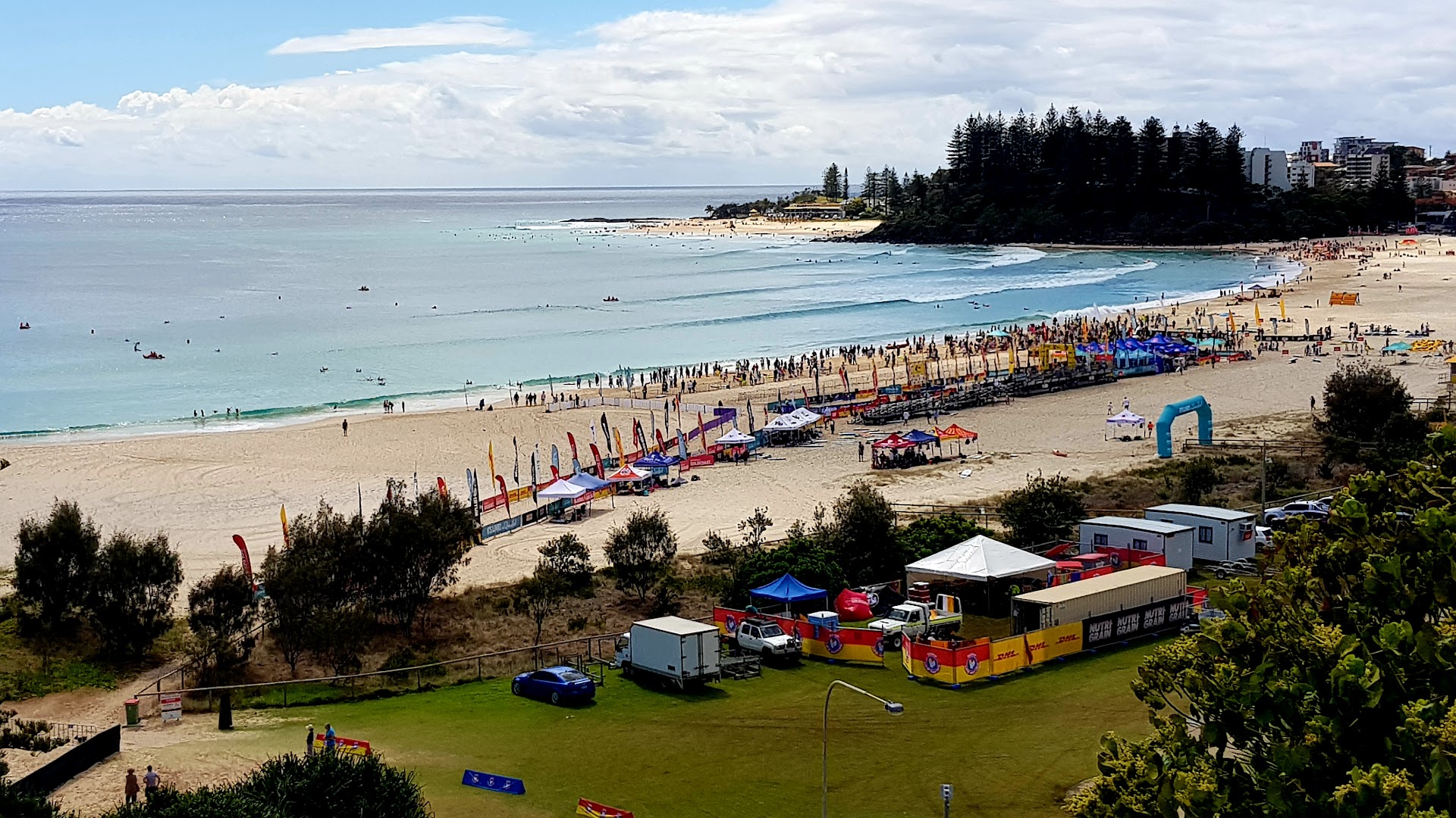 This is a great park to walk if you don't like sand between your toes. Not a lot of shade so take a hat. Play gym for kids. Markets used to be once a month but may be more frequent. It's big event is Cooly Rocks On, a classic car show with music everywhere, very safe. The surf club is a great place for a drink or lunch/dinner. It has the best views. Across the road from the park are lots of shops and restaurants. The next street over is the main street of Coolangatta. Parking varies, but you can usually get a park, although some is limited to 2hours. Toilets are at the both ends and there are a few picnic tables, but get in early. Beach is clean white sand....