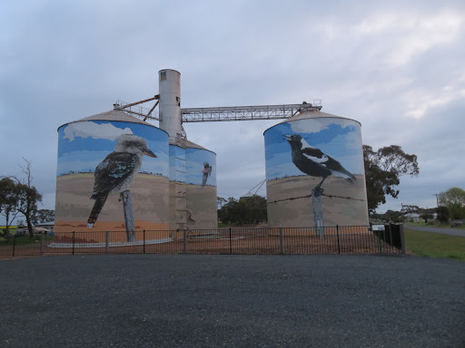 The silos here are beautiful featuring a kookaburra, magpie and galah. Very detailed. Off the main street but easy to find. The viewing area is neat and well kept with a small park and one or two picnic tables under cover. There were a few other people there including caravanners but there is no queuing and no-one collecting money. Some of the Silo sites have a donation tin or box but that's all. Goroke is small and I'm not sure what's available in the way of...