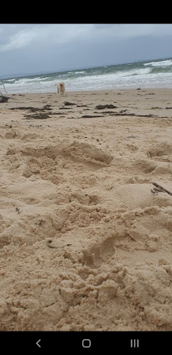 Went for a walk with our young Groodle pup, wanting to find a spot we could let her off-leash without running into other dogs. This part of Bribie has beautiful drift wood & fallen trees that perfectly seperates a few spacious areas for small groups/couples to relax/picnic/swim/play with or without dogs! Only problem with this area, some of the fallen trees have branches that stick back up out of the sand & you stump your feet on them! Big ouchies! Can often lead to open wounds! Watch Out For Those & remember where they are for the tide changes! You can't see them as the tide rises! (Different times of the year will have to check when it is again there are even dolphins, baby sharks & whales to watch! Your dogs can sometimes swim out to dolphins. Never had luck getting too close...