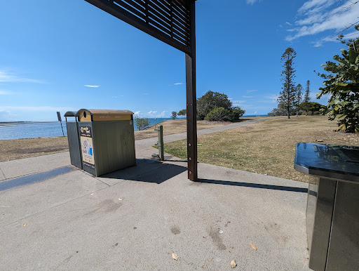 Read moreIt was a beautiful walk along a pathway that meanders along the foreshore. There are BBQs and a public toilet. The grass was well mown and the trees are young but very nice. There's a lovely beach... but signs warn of stone fish in the shallows so I didn't want to go paddling. Council has placed the bbq and picnic table in a great scenic spot but while sitting at the table the view of the water was interrupted by the putt placement of a huge garbage bin. It could have been placed anywhere else around the shelter but they chose the water side. Strange town planning. Also, the bbq was filthy but we were there at 11.30am on a weekday so maybe it wasn't time for the cleaning crew to go through yet. I took this photo on 0.7 (fisheye lens) to fit the full view of the bin and bbq so, in real life, the bin is way more imposing...