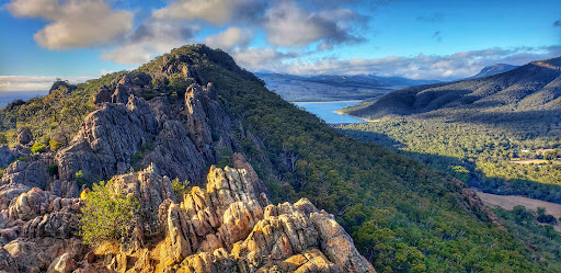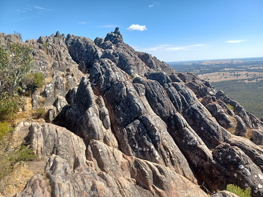 Once of the best hikes I've ever done... we arrived at the trailhead at about 7:00am, about 20 minutes before dawn, and made our way up... We reached the peak a little over 1hr later at a relaxed pace, meeting wallabies along the way. It gets a little scrambly at the very top, and takes some work on all fours for about one minute to reach the very top, and the result does not disappoint. The 360 views were incredible, as we sat and watched the sunrise fill the valley with liquid gold. In the distance is Lake Bellfield, Halls Gap's drinking supply, which we would canoe some hours later. Not connected to the other popular trail systems (Pinnacle et al), this hike gave a uniquely gorgeous perspective of the Grampians. Allow 3hrs to complete, be prepared to climb a...