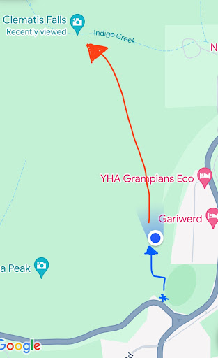 Start the walk from Halls gap recreation reserve or you won’t find the path. I parked my car at the blue star, walk alongside the field and then you will come across to the waterfall track that is the red line in my screenshot of the map. Unfortunately there is no water in the waterfall now (May), completely dry, but we knew it would be dry from reading other reviews. However it is still a really nice nature walk, see lots of birds and kangaroos along the way. So enjoy it as a nature walk, not necessarily...