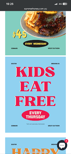 I am rating service, venue and beer here, not food. Service was excellent and I could not fault it, the staff were extremely polite, helpful and informative. The venue is brilliant and stays open until 9 am which is a rarity for a brewery/winery in this region of WA. Beer: I am a beer nut and have rated 1000s of beers in Australia and around the world (see 'a.dad.rates.beer' on Instagram.and I basically never give 10/10. 5 is average, 7.5 is good and 9 is outstanding. Boston 6.5% Squeeze is a NEIPA with classic deep yellow cloudy appearance. It has a creamy head and light tropical nose of pineapple and citrus hops. A good thick mouth is accompanied by a tropical mouth, good balance, and a slight bitterness on the finish that I would prefer wasn't there. Subsequent tastes see the bitterness less obvious, but it is there in the aftertaste. 7/10. Boston 5.7% The Right- Nut Brown Ale has a sweet dark malt and toffee nose and is rich brown but transparent when held to the light. It has a good creamy head and a lovely full and smooth mouth feel. Silky smooth with slight nuttiness and a tang on the aftertaste that makes me want more. Very, very drinkable. It is one of the best brown Ales I have had in a long time. I would be very happy to drink this one again. It could have a bit more of a nose, but that is the only fault I can find. 9/10. Boston 7% Cafe Quartet Chai Latte Spiced Milk Stout is blak with the slightest transparency if held up to a good light. This is a seriously nice and unique beer. Packed full of coffee, lactose, dark malt, chocolate flavours, and good hefty wack of alcohol flavours to create a great balance. It leaves you with a milky sweet chocolate taste in your mouth, which is most pleasant. The white head disappeared a bit quickly but returned if you swirled it. 9/10. Boston 9% Pecan Pie Imperial Porter is gorgeous and so black nothingvshines through even when held up to a good light. It is like a creamy alcoholic cola with coffee and cream added for good order. It is way, way too easy to drink. No bitterness on the finish, it is sooo smashable, it is dangerous. The most pleasure I have had since drinking Velvet Sledgehammers at the Tasdie in during Happy Hour. Even Denise likes it, and she normally hates dark beer. The tan head did disappear after a while, but a swirl gave some back, and thevpalate was naturally creamy, so it is not much of a fault. 9.5/10 Boston 5.5% Pumpkin Ale looks like a yellow Pale Ale. It has a strong spice smell like a good fruit cakevor Christmas pudding. Ginger, Cinnamon, and Nutmeg dominate the pumpkin until you taste it. Goes well with Spiced pork belly. 7.5/10 Needless to say I am impressed, but I must add, the attendant was so helpful, he allowed me to pick the 4 beers I liked best and the one my wife liked best from tasting about 10 of their extensive range of beers. He also said the Pumpkin Ale (my wife's beer) went well with spicey pork belly which it did, even though though the PB was a...