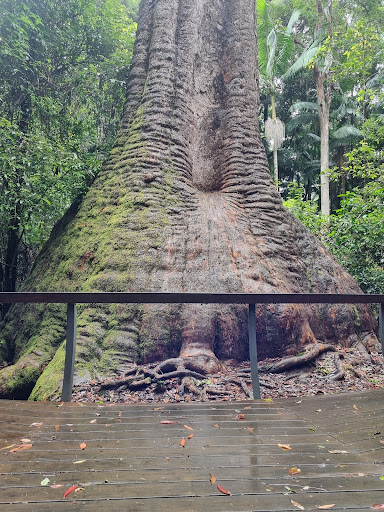 We had a bit of time to spare in between planned visits around port Macquarie and just happened to come across this on Google and decided to check it out. The access is a bit difficult and I d recommend and 4WD for sure (although I saw a Toyota Corolla hatch braving the gravel tracks that lead to this). You need to drive about 5-6 km on gravel roads before you can reach the parking lot. The allowed speed limit is 60 but I don’t know how you can do anything above 20 on that road. Once at the parking lot, it’s a nice 300 m trek into the rainforest. We did it on a nice sunny 27 degree day. It was a bit unnerving driving without seeing a soul into the rainforest and also not seeing anyone else at the car park or on the trek. But in the same vein it was thrilling as well. The tree itself is magnificent (confess that am illiterate as such on botany or plants). Definitely a photoworthy spot. You can easily squeeze this in under an hour in...