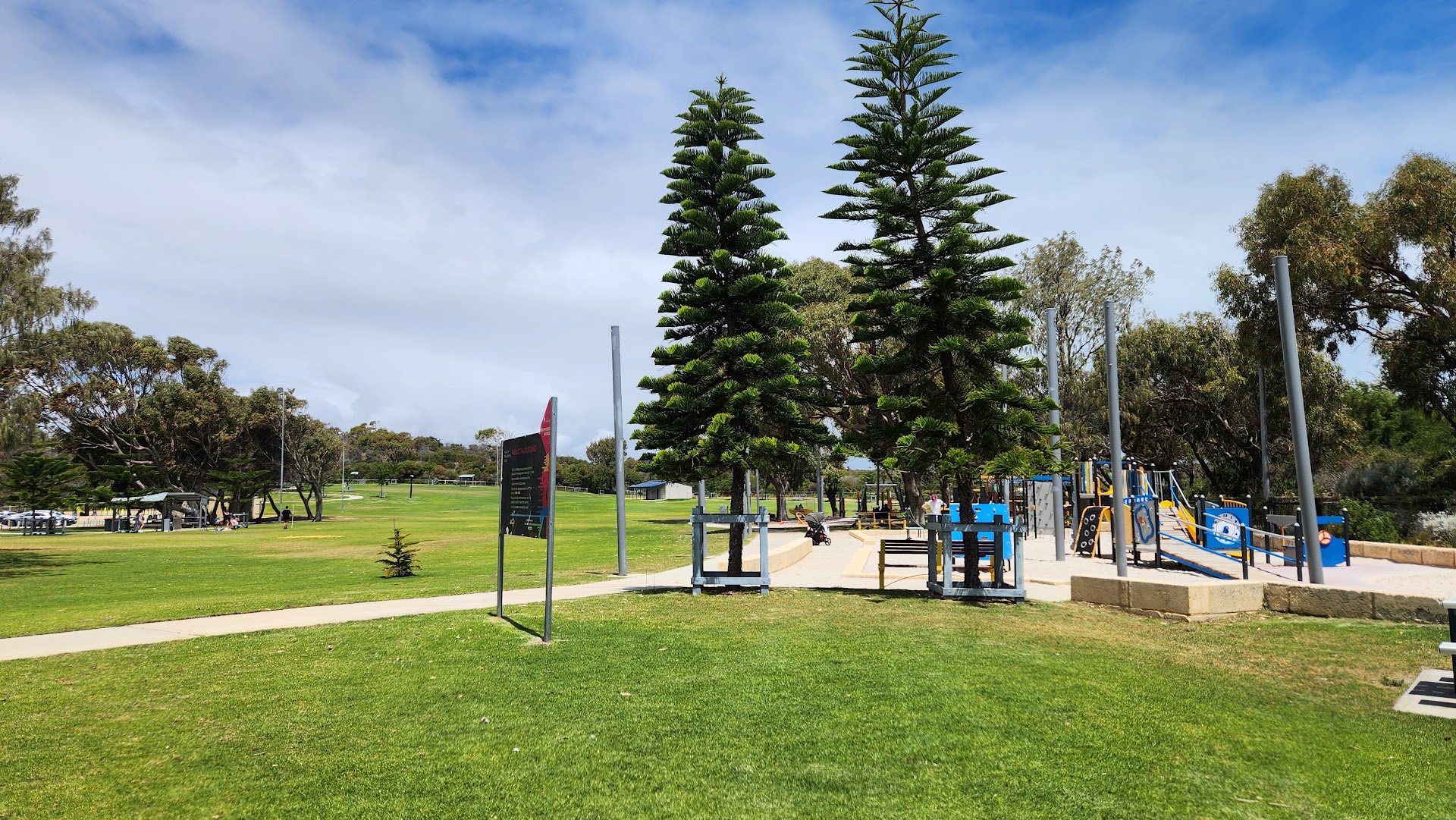 Just beware this park has not got enough bench /seats / tables, best to BYO particularly for the comfort of the elderly and infirm. Not complaining as I know there's cost in maintenance. Hand held umbrella may not be an good idea on windy days. So bring something strong, not far to fill your sand bags at the beach if you want weight to hold down your GAZEBO. Not sure what the rules are with pegs in public parks, but I do know particular councils do not allow metal pegs (plastic only) as its dangerous when accidentally mowed, not the obvious reason it is a projectile but because it leaves scattered remaining; many tiny pieces of sharp shrapnel. Quite annoying to get it out from under your skin and then tearing more flesh, like a fishing hook when you try pull it out with tweezers. Glad it wasn't on my butt.