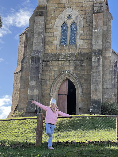Outside was a cemetery and a beautiful view of Richmond Tasmania.