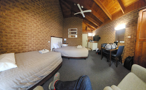Really nice place to stay that is really not expensive. Tv is large and more than enough for the stay. Spacious rooms and bathrooms. Beds could perhaps do with a more modern update.... but everything was clean and comfortable. Short walk to the centre of town and towards the gin distillery end which is even better. Pool was quite small but great for kids. There was plenty of bird life around including rosellas and king parrots which stopped by to nibble on the plants and trees there. Staff were nice and friendly and it was dog friendly which is a HUUUGE bonus. We stayed with multiple friends over multiple rooms but unfortunetly we did stay in a room that had an adjoining door to the next room.... wasn't a problem for most of the stay, but unfortunetly had a bad experience on 2 of the nights where the neighbors in the adjoining room decided to speak in bed until 3.30am in the morning both nights then wake up at 7am with the tv going both mornings. Wouldn't be a problem but for the adjoing door which made every sound made next door sound as though it was in our room,they wernt particuly being "noisey" but talking that loudly until that time was very odd and the sound just travelled straight through, thank God they left and the neighbours for our last night were fine.... I would highly recommend not staying in room 24. Our friends who were in other rooms had no adjoining doors and had no noise problems at all. Besides that, the place was great, i would easily stay again but if told I would be in room 24...