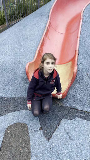 ย ย ย Read moreIt has a lot of playground equipment that you dont see on every park. Loved the idea of the slide and the road. The fence around the play area doesn't lock as the gate is broken. The blue mounting on the slide also stains any white parts of your children's shoes. There are also a fair few shrubs that have died and now pose as a trip hazard in the play area.