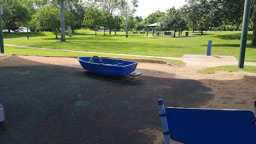Very well maintained park with beautiful shaded playground and shady pathways for cool walks along ponds. It is an old park so the trees are majestic and provide plenty of shade everywhere It also has some hills (for card board sliding) and open grass aeas for some ball games. Bring the kids scooter or bike to have a ride along the concrete paths. Don't forget your insect repellent though as it is close to the coast and has a lot of water itself so there can be a lot of mozzies around. And despite the shade sunscreen is paramount. Sadly there are no water play areas despite the suggestive name. Otherwise it would have gotten the...
