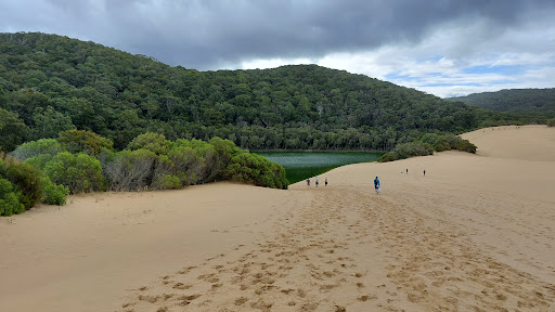 Having been to every other spot on the island we left Lake Wabby til last and I have to say I was a bit disappointed. It’s certainly no Lake McKenzie. Mostly sand there’s only a small green body of water to swim in. You have to walk to the look out and then branch off to the left for a 1km trek down to the lake area. For me, it wasn’t worth the hassle but each to their own. Perfect example of shifting sands on a sand island taking over nature. There is a decent toilet block there should...