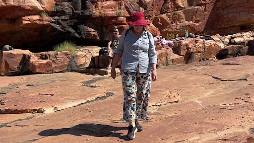 We had a great time enjoying the spectacular scenery of Bell Gorge. It is part of the Wunaamin Miliwundi Ranges and now part of the Wunaamin Miliwundi Ranges Conservation Park. It is renowned for its stunning, multi-tiered cascading waterfalls which are clearly the main attractions with their layered sandstone cliffs which lead into a large, deep pool below. The walk is described as moderately challenging although towards the end it becomes quite slippery and can be a challenge. But even, if as like us, you don’t make it to the final deep pool there are a number of other pools that can be enjoyed. The view to the deepest pool is great. It is at least 3 km return and people are advised to be cautious of the heat and be very careful going over the slippery rocks towards the end before reaching the pools. Despite the caution it is well worth the effort. And taking some picnic lunch to enjoy the surroundings is...