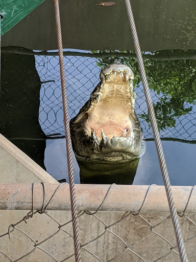 Read moreCrocodylus Park is a great place to visit, I highly recommend visiting. The park started off as a crocodile research facility, and still participates in research projects but now includes other indigenous and exotic animals and is now a tourist destination (its other animals include monkeys and lions). The adult crocodiles here are rescued from the wild, as they have been aggressive toward boats/humans/etc and are a potential risk out in the wild. The staff/rangers at the park are extremely knowledgeable, friendly, very very enthusiastic and always willing to answer a whole swathe of different questions. They even opened with "Please ask us questions, we love questions, there is no such thing as a dumb question". I highly recommend attending a crocodile feeding session, where visitors had the chance to dangle chicken giblets into the crocodile breeding pens. Also, the boat ride is awesome, it incurs a small extra charge (but easily well worth it). This is a trip through their man-made estuary/river which they built many years ago, and they have stocked 40-odd crocs in it, lots of native vegetation, and a bunch of local wildlife has migrated into there as well. There is also a chance to hold a small crocodile, as well as reptiles such as snakes. There is also a museum which is generally quite good but compared to the rest of the park, is a let down. Some of the exhibits are a bit of a joke, and when we were there, the museum had an awful smell (this was in the middle of the wet season, so I'm not sure if it was a factor). Overall though, omitting the museum which needs a good overhaul, it's a great place to visit for young and old and includes a small canteen...