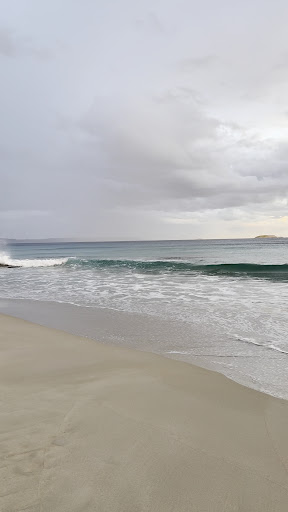 The sand is white and clean and the water a delightful colour! It is a 4km return journey from carpark to the end (walking to the left to the end and back)