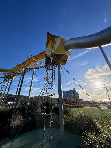 Read moreGreat parkland setting, the Council has done extremely well setting this up. Really wanted to climb up the big rope thingy for a 'big kid' slide but thought better of it! (went down the smaller accesible one instead!!) the water/creek play area is brilliant, even had to show some kids how the pump one worked! Would love something like this to be built in Queensland, near where I live, to take our Grandaughter around it, in a few years! But the councils up there all live in 'nanny' state, and wouldn't build such great "natural parklands" without all the plastic playgrounds equipment! To have 2 full court basketball courts, instead of just a half court system is...