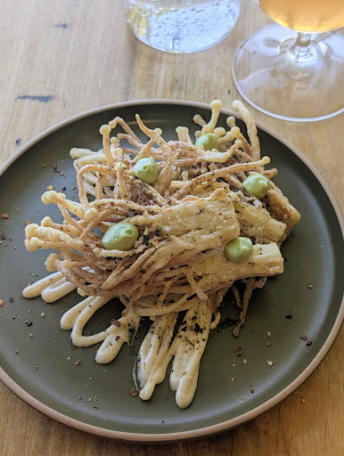 Read moreWe had the most delectable vegan feast here today for our anniversary. There are currently a couple of vegan friendly dishes on the menu, but we had experienced the chef's beautiful plant-based creations several months prior so called ahead and asked whether they offered other plant-based dishes. They happily obliged! Our banquet included lovely house made bread, an incredible tempura enoki mushroom entree, delectable dumplings, toffee topped carrots, crispy potatoes and a medley of spring vegetables with flatbread. To top it off was a chocolate mousse & vanilla bean icecream with quinces. We were thoroughly spoilt. Everything was expertly seasoned, beautifully presented and absolutely scrumptious. The service was wonderful too. As always, the views and setting were glorious. If you are vegan, don't hesitate to book even if the menu doesn't list an abundance of options (Just just be sure to call up and give plenty of notice of your dietary preferences). You will be very well...