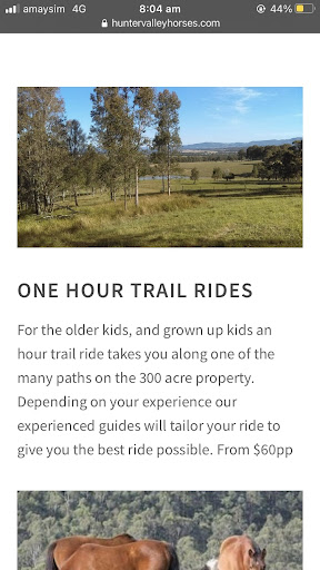 Read moreThis place is a joke. If I could give it MINUS 5 star I would. We came up from sydney for a two day trip. On our second day we booked for a 1.5 hour horse riding session for noon. We got there at 11:20 and it was raining. We were told that the rain will subside and to wait til noon. We do so and the rain just got harder- to the point where it's literally pouring and it looked dangerous to go out. The guides say that it will be safe and that though the horses may slip and slide that it was normal. We spoke to the boss Margaret, over the phone in hopes of negotiating an outcome. We weren't very hopeful as we had looked up google reviews in thetime we were waiting and saw a complaint about a similar situation where they were unable to reach a compromise with Margaret. She replied to that reveiw and said that there was another side of the story so we were curious to find out. We asked very politely for a refund and if not even a part refund because the weather is out of everyone's control. We understand that she may have incurred costs paid to the guides and hence we were happy to settle with a part refund. She pressed on that according to they cancellation policy that unless the guides said it was unsafe then they would not offer any refund NOR ANY RESCHEDULE OPTION. Now can someone please tell me under what situation wouldthe guides say its unsafe- that is 100% subjective and theyare probably subject to pressure from their unreasonable boss Margaret anyways. Mind you after this conversation with Maragaret, the guides say that if they were us they wouldn't go out either. It is typical of such a business to AT LEAST offer a chance to reschedule in this situation so I asked why as a reschedule doesnt incur any loss to they business. She tells me rather rudely that I obviously dont know how the business operates and that she needs to pay the wages and feed the horses- erm, what? So does that mean she DOESNT feed the horses when there are no rides booked??? She is most unreasonable and really does not know anything about creating a good customer experience or doing business. 100% WOULD NOT RECOMMEND TO ANYONE. just a complete waste of time and money- mind you that's $190 down the drain for no apparent reason. I dont understand how a business can be so...