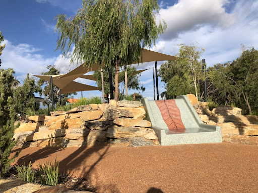 Large new and fairly secret park. Very scary large slide. Even takes adults. Though it's relatively safe as it's fully enclosed. Don't let kids climb up if anyone is coming down though. Very dangerous if they do. Probably the best free slide in Perth. Very good associated climbing frame. With a scary sway to it. (Not a dangerous sway). Very good monkey bars. Other play features are good but not unusual. Sand and water play. Large nest swing. No toilets. Limited parking. Good covered BBQ area and seats and tables. Good landscaping and lawns No fountain I saw. Still kids...