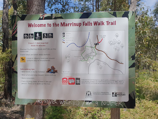 We drove in via marrinup drive. This was a little bit rough with some deep ruts that needed to be manoeuvred with care in our 4wd. We wondered if grey road may have been easier to drive in on. I wouldn't recommend Marrinup Rd for a low vehicle or 2wd. A nice loop walk leading to the beautiful but freezing waters of marrinup pool. Having gravel steps a lot of the way down, would definitely make anyone pushing a pram or wheelchair think twice. Not impossible, but I wouldn't tackle it on wheels. Plenty of native blue sun orchids in full flower to admire at the end of October. 3 or 4Â other families around coming and going so not crowded. An easy walk, even...