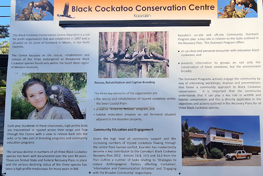 I loved every second of my time at KaarakinBlack Cockatoo Conservation Centre!! Brought my Mum for a tour and our hearts were filled with joy seeing the awesome work that The Kaarakin volunteers do for these amazing endangered birds. Our guide was so knowledgeable about everything to do with the 3 x Black Cockatoo species and the info that he gave us was spot on. As well as the Black cockatoos it was wonderful seeing the dingos, emus, kangaroos, finches and other beautiful birds!! Please donate generously to Kaarakin Black Cockatoo Conservation Centre. Populations of these magnificent birds are dwindling because their roosts and food sources are being cleared at a shocking rate. They need all the protection and care...