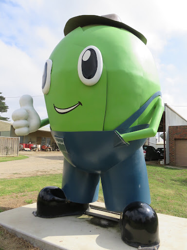 This a a Brussels Sprout farm. While that may make you smirk, you need to know that sprouts are excellent eating, this family farm takes pride in growing them, and they host a terrific festival from time to time (two so far, and I hope it becomes regular). The farm is open for sales at some times in the season, but your main interest here his that driving by, you will get to see the BIG BRUSSELS SPROUT! Yes, a new Big Thing on the Aussie map. His name is Arthur, after the owner's dad.