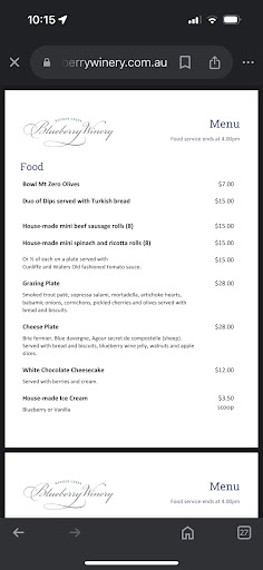 We tried the wine-tasting paddle (4 Ă 100âŻml pours), which included two blueberry wines and two ciders. The sparkling blueberry wine was beautifully crisp, while the fortified was rich and warming. I especially loved sampling cider alongside fruity winesâit made for a fun and varied tasting session.