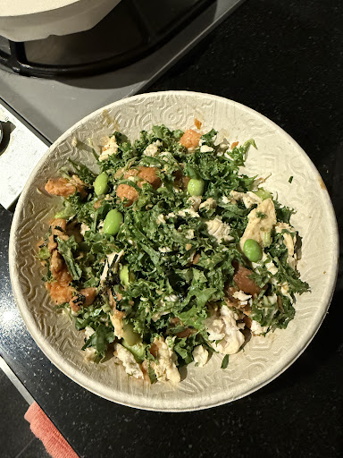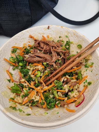 The food was a little dry and feels a bit like you have to chew it excessively to get down the mixture of dry rice, dry beef, and so much kale that it resembled tabouleh.