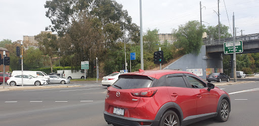Read moreJust your run of the mill elevated train station (Upfield line). The concrete wonder of the elevated Citylink expressway & other overpasses snake around it. In the background are the commission flats & a huge straight yellow pillar looming over the expressway at a precarious angle... as if it would fall any moment and slice the expressway & the hapless commuters below. I suppose this is meant to be art. The large expanse of the concreted drainage basin of the Moonee Ponds creek is nearby. Behold the dystopian brutalism of concrete all around you while standing near it (when its dry). You'll feel like you've walked onto the set of 'Blade...