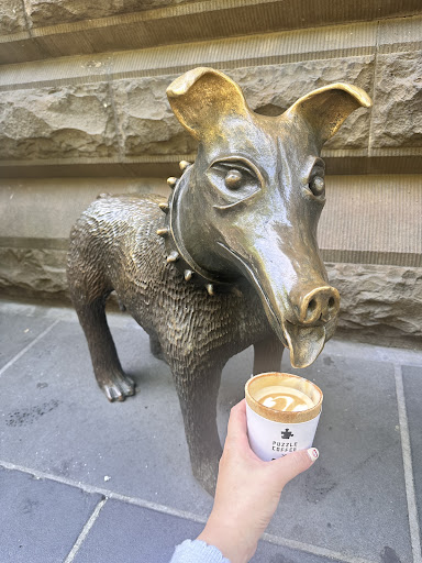 Larry La Trobe is the name given to a popular, cast bronze statue of a dog situated on the northern end of Melbourne's City Square. Along with the Burke & Wills monument, the statue is one of only two free standing art works in the City Square precinct.